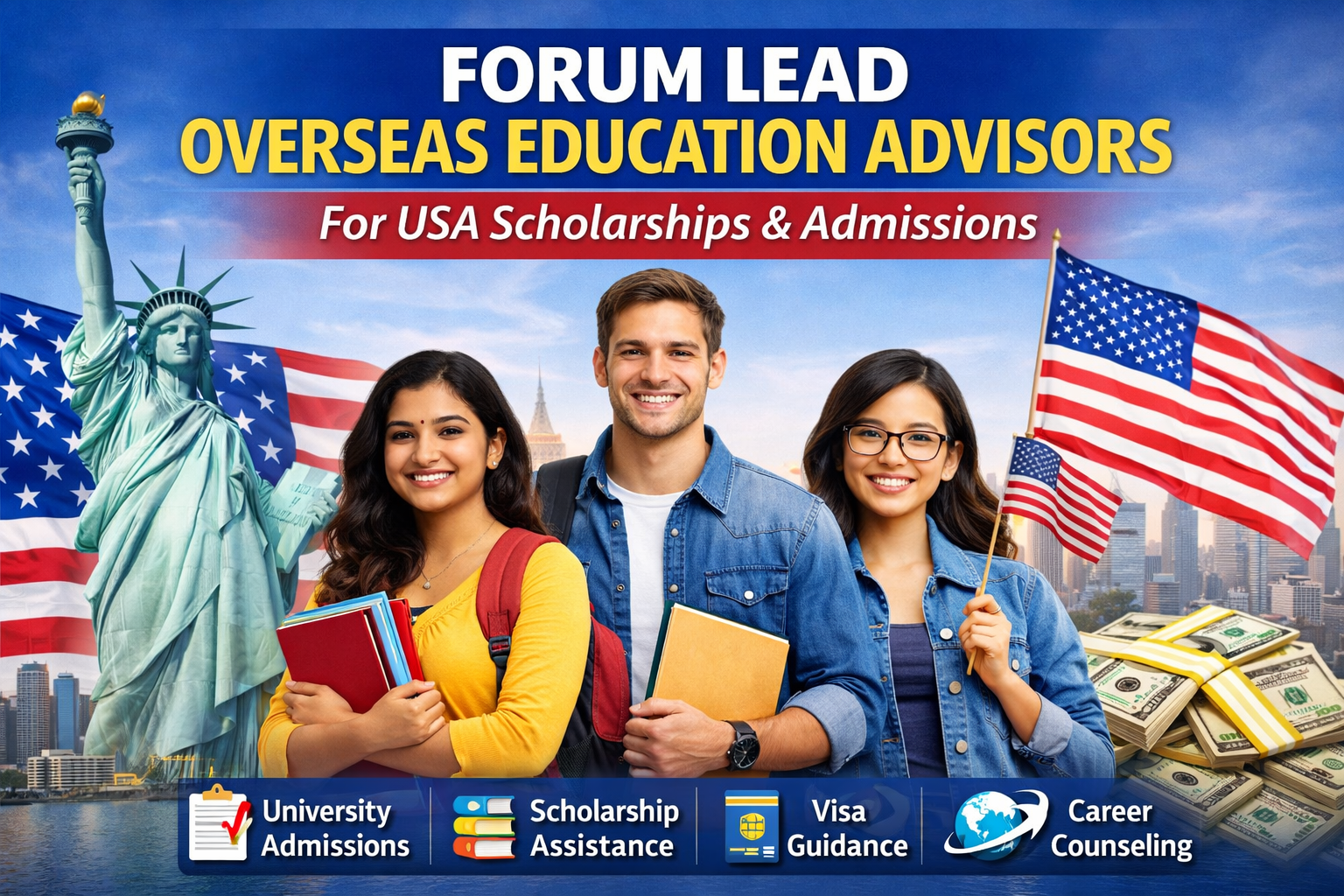Forum lead overseas education advisors offer expert support for USA scholarships and admissions, helping students secure top university placements and financial aid opportunities.